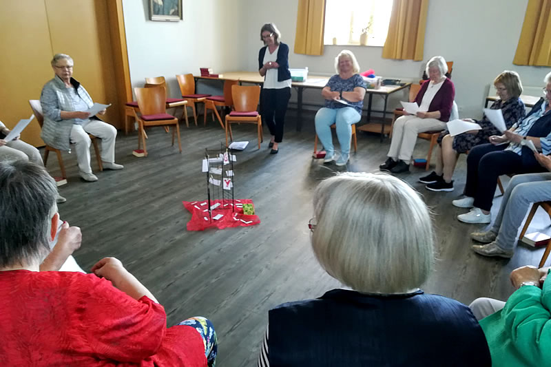 „Sprache leben - mit Herz, Mund und Händen“ – zu diesem Thema hatte der Bezirksverband der Evangelischen Frauenhilfen Unna Anfang Juni eingeladen. Ein Dutzend Frauenhilfe-Frauen aus dem Kirchenkreis Unna trafen sich dazu im Melanchton-Haus in Massen. Referentin Pfarrerin i.R. Petra Buschmann-Simons nahm die Teilnehmerinnen mit in die Facetten reiche Welt der Sprache.