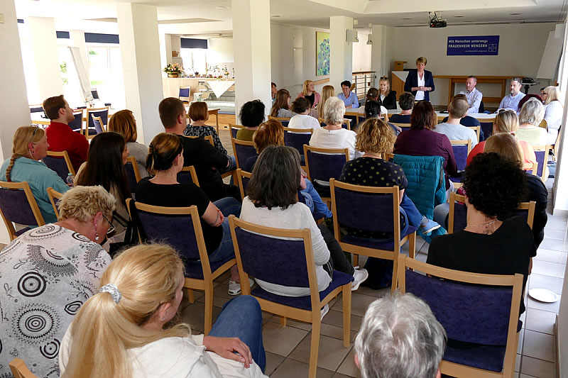 „Fragen und Antworten zum BTHG“ lautete der Titel einer Fortbildung für alle Mitarbeitenden im Bereich Wohnen und Tagesstruktur des FRAUENHEIM WENGERN Ende Mai in der Cafeteria.