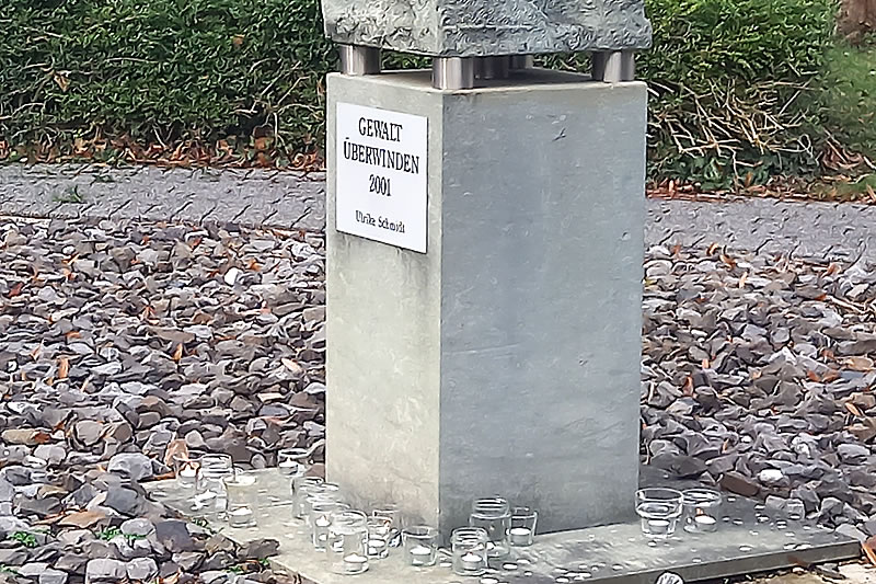 Wieder zündeten mehr als 20 Menschen mittags Hoffnungslichter an und stellten sie rund um das Mahnmal zur Überwindung von Gewalt, das die Bildhauerin Ulrike Schmidt erstellt hat.