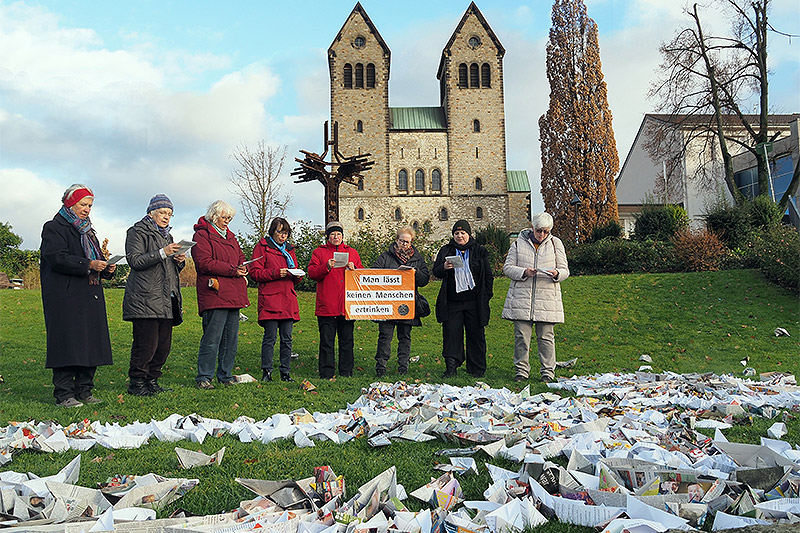 Die vielen Papierboote stehen jeweils für ein Menschenleben, das durch ein Rettungsboot hätte gerettet werden können. „Solange tagtäglich Menschen im Mittelmeer sterben, müssen Zivilgesellschaft und Kirchen das Versagen der europäischen Staaten anklagen und so viele Geflüchtete wie möglich aus dem Mittelmeer retten“, ergänzt Birgitt Schuh-Johannsen, Vorstandsmitglied der Westfälischen Frauenhilfe.