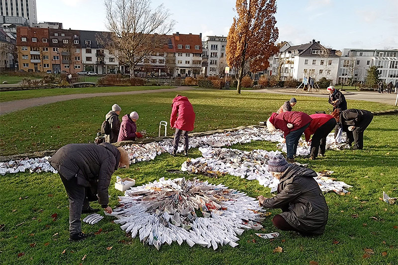 Mit 2.400 Booten aus Papier haben Frauen des Bezirksverbandes Paderborn der Evangelischen Frauenhilfe in Westfalen auf die Notwendigkeit ziviler Seenotrettung aufmerksam gemacht. So viele Menschen verloren nach Angaben der UNO-Flüchtlingshilfe im Jahr 2022 ihr Leben bei dem Versuch, über das Mittelmeer nach Europa zu gelangen, um hier Schutz vor Verfolgung, Armut und Unrecht zu erhalten. Und so viele Boote hatten die evangelischen Frauen in den Gruppen des Bezirksverbandes Paderborn in den Monaten vor der Aktion am 10. Dezember gefaltet.