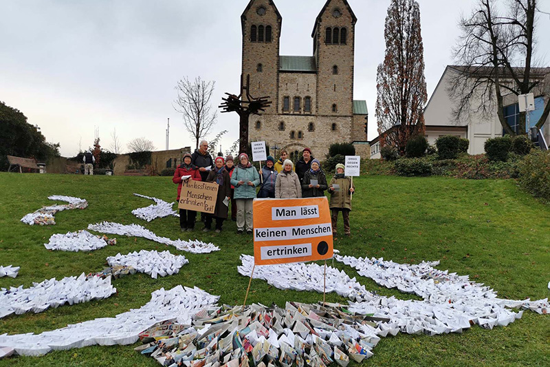 Zahlreiche Gruppen folgten auch in diesem Jahr dem Aufruf der Evangelische Frauenhilfe in Westfalen e.V. (EFHiW) und des Bündnisses United4Rescue: In Gedenken an die Toten im Mittelmeer falteten sie jeweils 2.526 Boote aus Zeitungspapier und legten diese am 10. Dezember auf öffentlichen Plätzen nieder - jedes Boot als Symbol für einen Menschen, der im Jahr 2023 bei der Flucht über das Mittelmeer sein Leben verloren hat. Die Aktionsgruppen in ganz Westfalen setzten damit ein deutliches Zeichen und machten auf das Versagen der europäischen Politik in der Flüchtlingskrise aufmerksam.