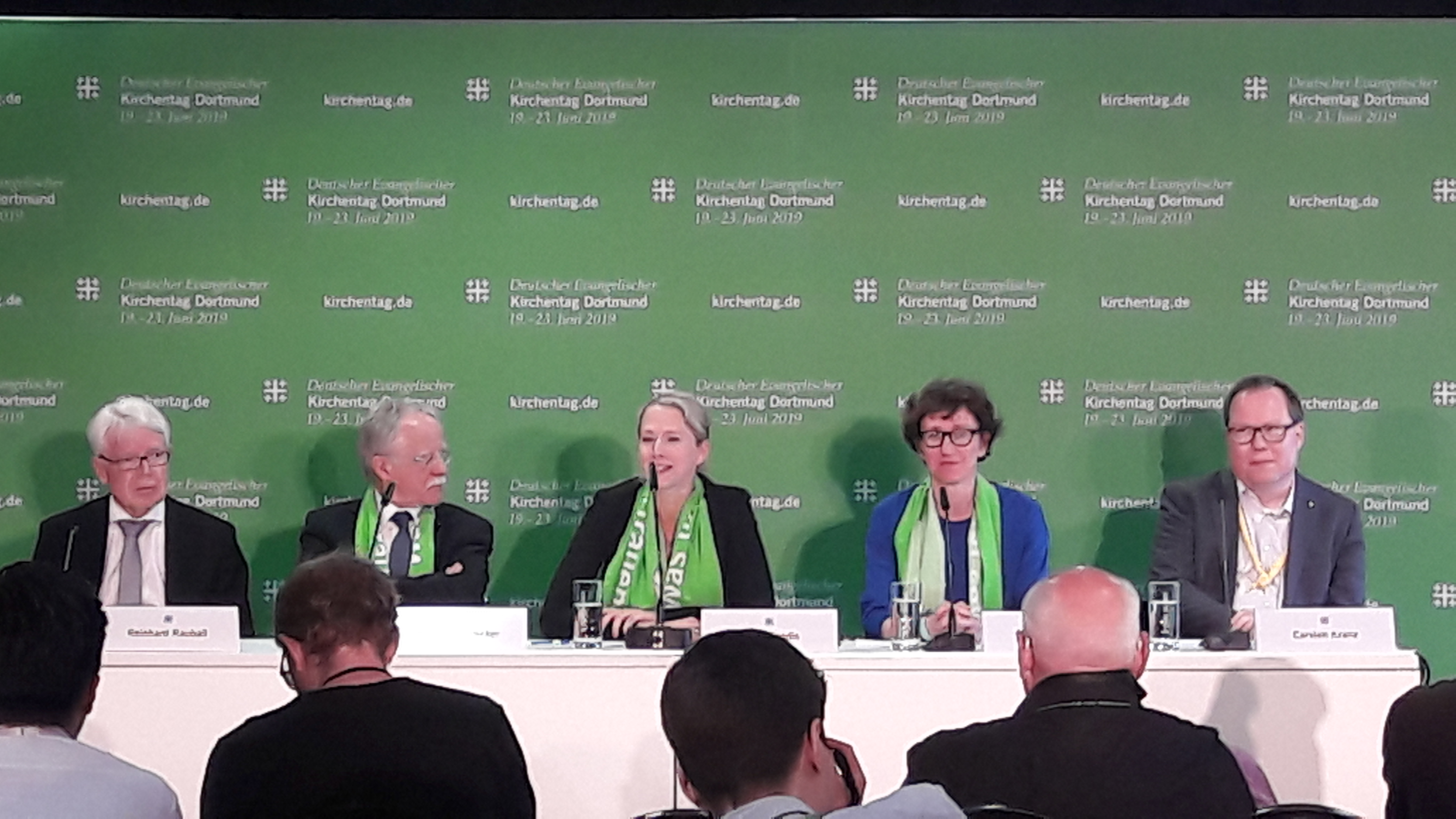 In Westfalen von Bedeutung - der Sport "Der Sport ist bei uns in Westfalen, nicht nur in Dortmund der Fußball, von großer Bedeutung - darum darf ein Zentrum Sport beim Kirchentag nicht fehlen", so Reinhard Rauball. Und der Präsident des Kirchentages fasst den gestrigen Auftakt zusammen mit den Worten "Der Kirchentag ist ein Anker in der Gesellschaft und kümmert sich um Werte. Und das wird von manchen mit großer Dankbarkeit wahr- und angenommen!" |